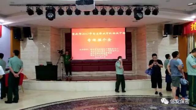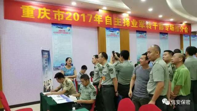 我公司的重庆子公司——重庆信密安信息技术服务有限公司在重庆招兵买马。 今年,重庆市有800多名选择了自主择业安置方式的军队转业干部,重庆市军转办在重庆社会主义学院举办专场推介会,我们重庆信密安公司也参加了推介会,并受到军转干部的高度关注。