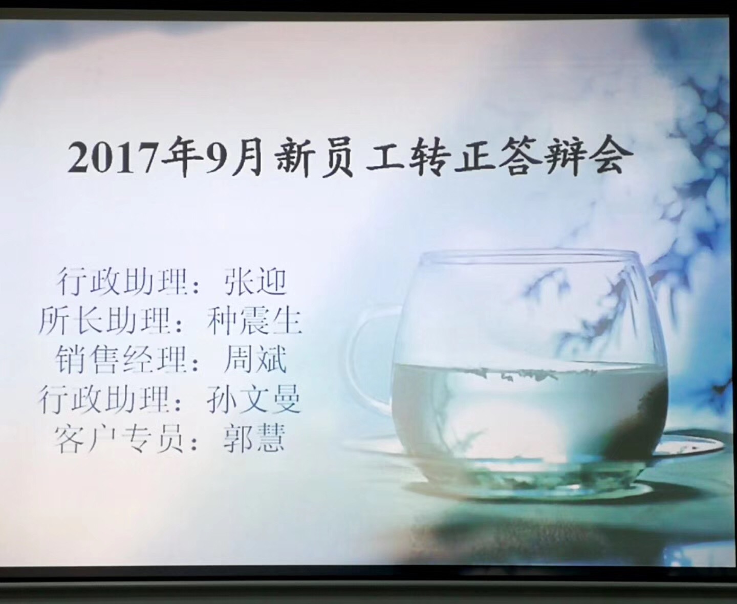 2017年9月30日,我公司组织对六名试用期新员工进行转正答辩,包括一名团职军转干部。 在转正答辩中,重点考察新员工对公司文化的了解、理解和融入情况,考察对公司业务、产品的掌握情况,考察和客户的沟通能力,考察个人的语言表达能力、综合分析判断和解决问题的能力、随机应变能力以及诚信能力,考察大局观和服务意识等等。 通过各类题目的设计及现场的随机提问和回答情况,基本上对参加转正答辩的员工能有一个较为准确的评价。 转正答辩的过程,也是一个大家互相学习提高的过程,也是一个培训的机会,所以转正答辩是一件一举多得的好事情。 今天的转正答辩,五名新员工顺利通过答辩,一名答辩成绩不达标,按规定需要调整待遇和岗位。 这正是: 博宇光电大家庭, 既是家人又是兵; 答辩学习共成长, 和谐互助事竟成。 注:西安博宇光电科技发展有限公司是围绕国家安全包括信息安全保密、安全防范管理、军民融合推进的综合服务平台。