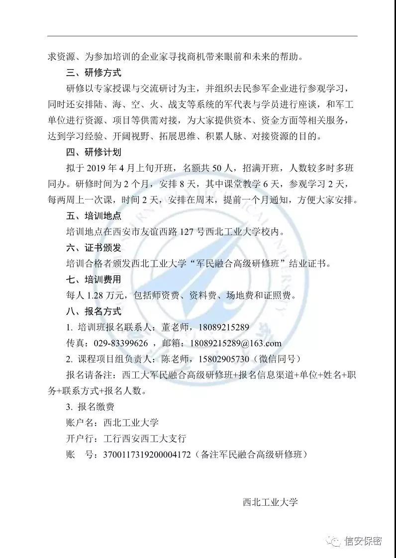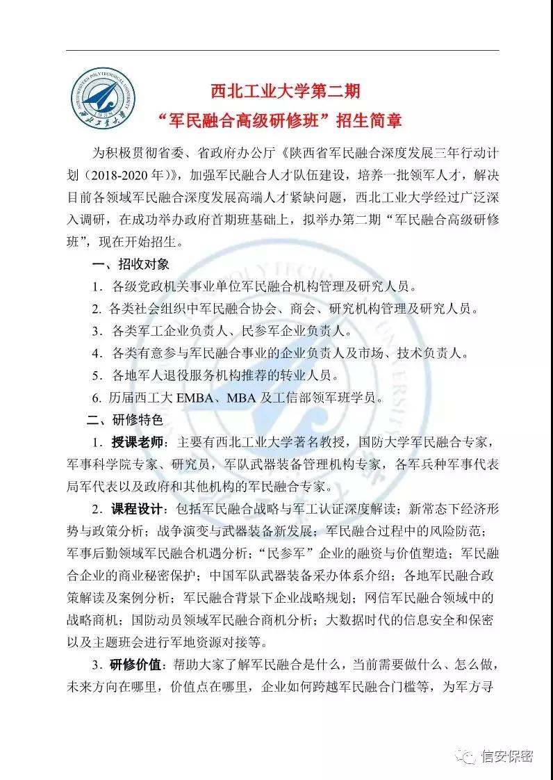 西北工业大学第二期“军民融合高级研修班”招生简章