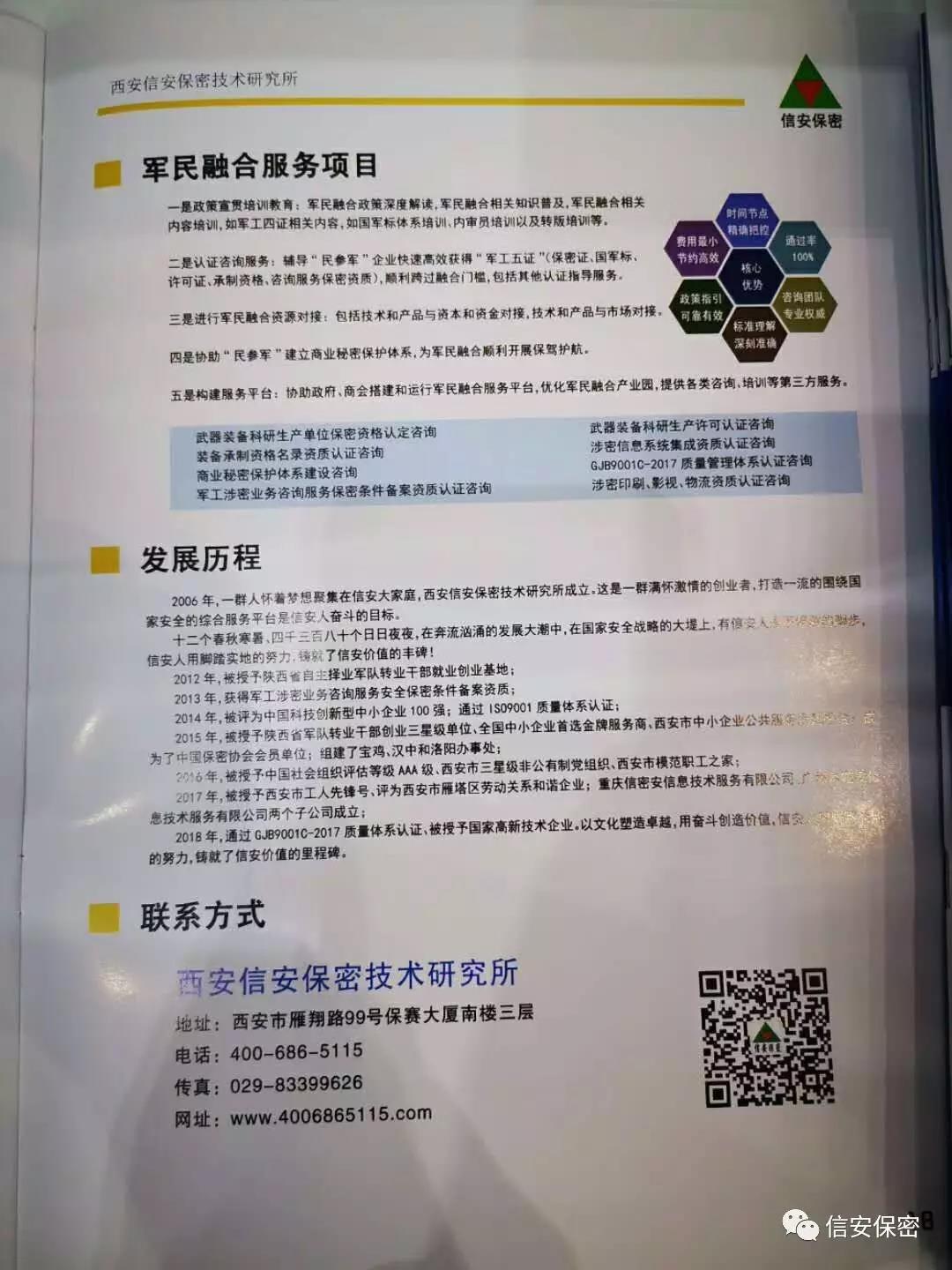 西安信安保密技术研究所在广州参加“第十六届中国国际中小企业博览会”,重点推出针对企业的“商业秘密保护体系建设”服务和“军工认证体系建设”服务,受到参会者的高度关注,商业秘密保护已经成为很多企业迫在眉睫的首要任务,被提上了单位的议事日程。军工认证体系建设是参与军民融合发展的重要条件,必须要高度重视。 西安信安保密技术研究所在广州国际会展中心A区1.2B01区参展第十六届中国国际中小企业博览会,欢迎各位新老朋友关注宣传,欢迎广州的朋友到场指导、参观、洽谈。 联系人:薛建军所长助理 电 话:13659112653