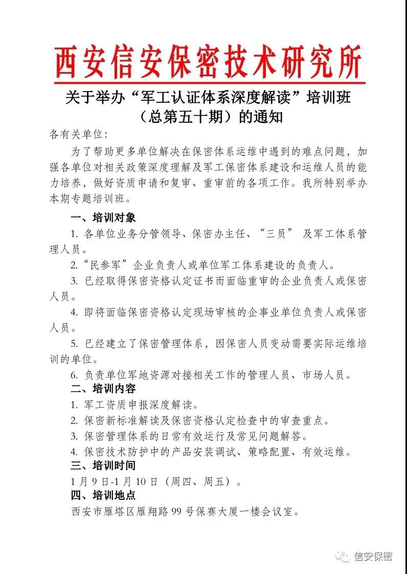 元月开班 | 第五十期军工认证体系深度解读培训快来报名!